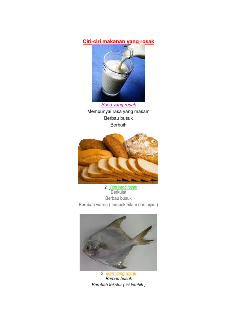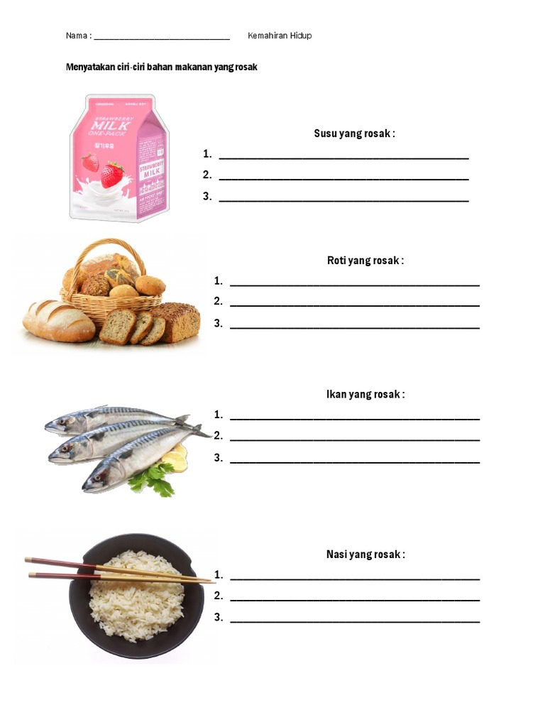 Latihan 2 Perhatikan Gambar Yang Diberi Dengan Teliti Nyatakan Samada Makanan Rosak Atau Tidak Rosak Berdasarkan Gambar Yang Diberi Worksheet