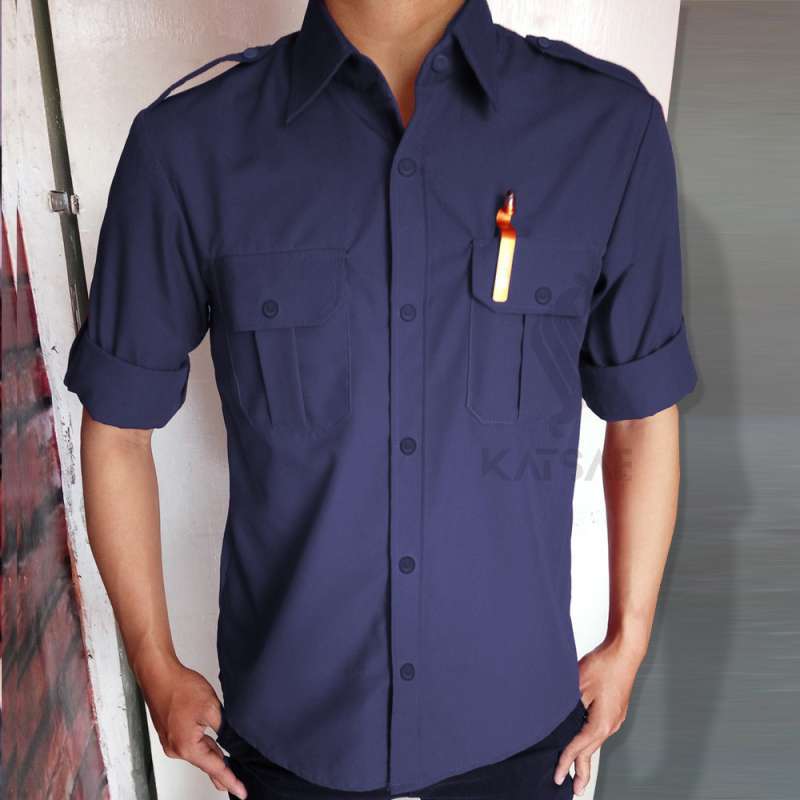 Jual Kemeja Pria Seragam Pdh Kemeja Pria Lengan Panjang Kemeja Tactical Biru Navy Indonesia Shopee Indonesia